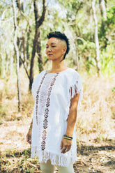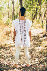 This traditional, hand-stamped, Tunic top is crafted from 100% cotton. Ethically produced with care and purpose in India. One-size-fits-all. Made from medium weight hand loomed cotton.