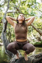 Elevate your activewear with the Enigma Top in a rich plum shade, designed for those who appreciate both style and mindful craftsmanship. This high-neck yoga top is skillfully crafted from organic stretch bamboo, offering exceptional softness and breathability for superior comfort during your practice. Ethically handmade with care and intention in Bali, Indonesia, each piece reflects sustainable values and meticulous attention to detail. The model showcases a size Small in Forest & Nutmeg, and a detailed sizing chart is available to ensure the perfect fit. For a personalized touch, the length of the top can be extended upon request—simply specify your preference when ordering. Perfectly balancing elegance and functionality, the Enigma Top complements your wellness journey with refined simplicity and conscious design.