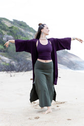 Handcrafted with love and intention in Bali, Indonesia, the Cedar Skirt in Forest combines artisanal craftsmanship with sustainable materials. Made from organic stretch bamboo fabric, this maxi skirt offers exceptional comfort and breathability while maintaining an elegant flow. Its unique double-split design provides graceful movement and versatility, perfect for both casual and refined occasions. For an impeccable fit tailored to your shape, please refer to our detailed size chart. The model, wearing a Small (8AU/4US), showcases the earthy forest shade that complements a sophisticated wardrobe effortlessly.