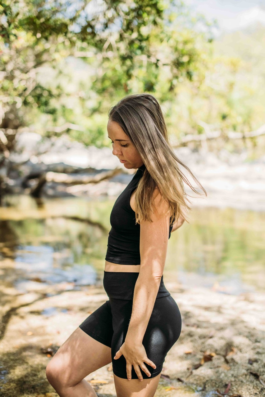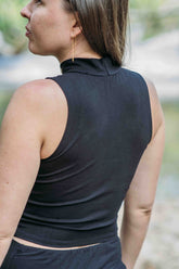 The Enigma Top in Black offers a refined blend of comfort and elegance with its high-neck design crafted from stretch bamboo viscose. Ethically handmade with care and intention in Bali, Indonesia, this yoga top embraces both sustainability and style. Its breathable, soft fabric moves effortlessly with you, enhancing your practice or daily wear. Designed to flatter, the model wears a size Small—please consult the sizing chart for an ideal fit. For added versatility, we also offer the option to extend the length upon request, ensuring the top suits your preferences perfectly. Elevate your wardrobe with this timeless, thoughtfully created piece.