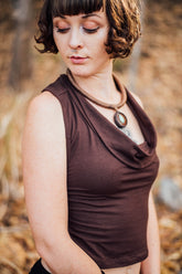 Crafted from luxuriously soft and breathable bamboo viscose, the Spirit Top in Chocolate offers an elegant blend of comfort and style. This cowl neck design drapes beautifully, enhancing your silhouette with gentle fluidity. Ethically handmade in Bali, Indonesia, each piece reflects careful craftsmanship and meaningful intention. The rich chocolate hue complements a variety of wardrobes, exuding understated sophistication. Available in a size Small as modeled, with detailed measurements accessible via our sizing chart to ensure the perfect fit. For a personalized touch, custom length alterations can be requested during purchase, allowing you to tailor this timeless top to your unique proportions.