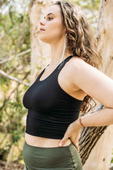 The Vinyasa Bamboo Top in Black offers exceptional comfort and support with its double-sided design, crafted from premium stretch bamboo viscose. This top features OEK-TEX 100 Certified non-toxic fabric, ensuring both safety and breathability for your skin. Each piece is meticulously handcrafted in Bali, Indonesia, reflecting a commitment to quality and artisanal excellence. Ideal for yoga and active wear, it provides firm support while allowing freedom of movement. The elegant black hue complements any outfit, and our detailed sizing chart ensures the perfect fit—model shown wears a Medium (10 AU/6 US). Elevate your practice with this sustainable, sophisticated top.