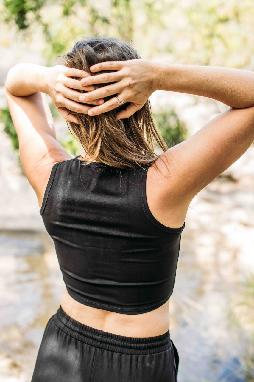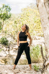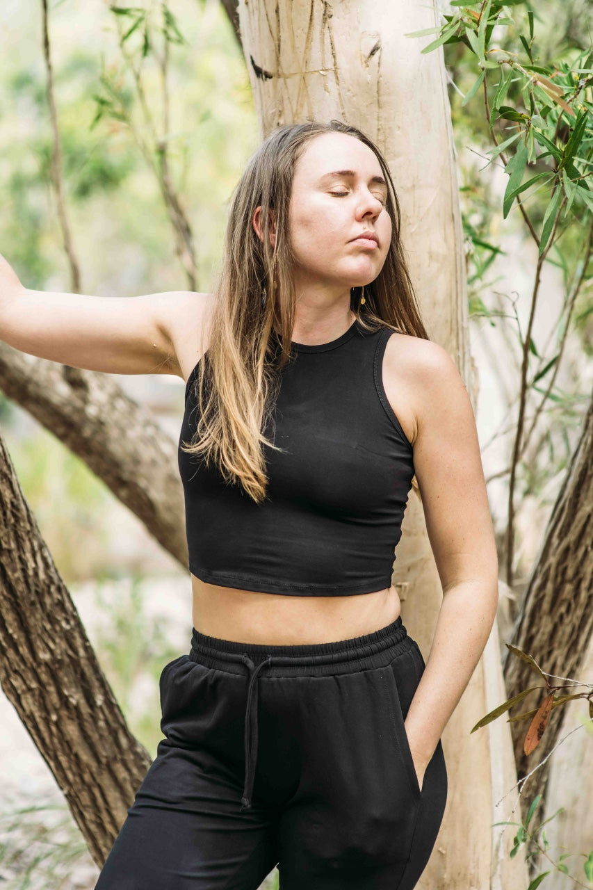 Crafted from organic stretch bamboo, the Yin Bamboo Top in Black offers a refined blend of comfort and elegance for your yoga practice. Ethically handmade with love and intention in Bali, Indonesia, this tank top embraces sustainability while delivering a breathable, soft fit that moves with you. Its luxurious fabric naturally regulates temperature, ensuring you stay cool and comfortable throughout your session. The model shown wears a size Small (8 AU/4 US), highlighting the top’s flattering silhouette and versatile style that complements any wardrobe with understated sophistication.